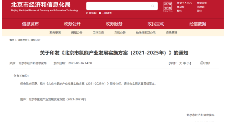 率先打造氢能创新链和产业链,北京市发布氢能产业发展实施方案(2021-2025年